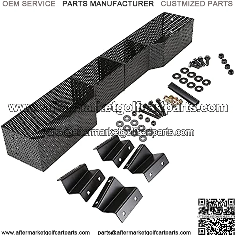:The Yamaha G29 front storage basket tray made of heavy metal mesh with a rubberized coating. High gloss black electroplating provides a long lasting and resist corrosion high quality look. Very functional to have on the golf cart.