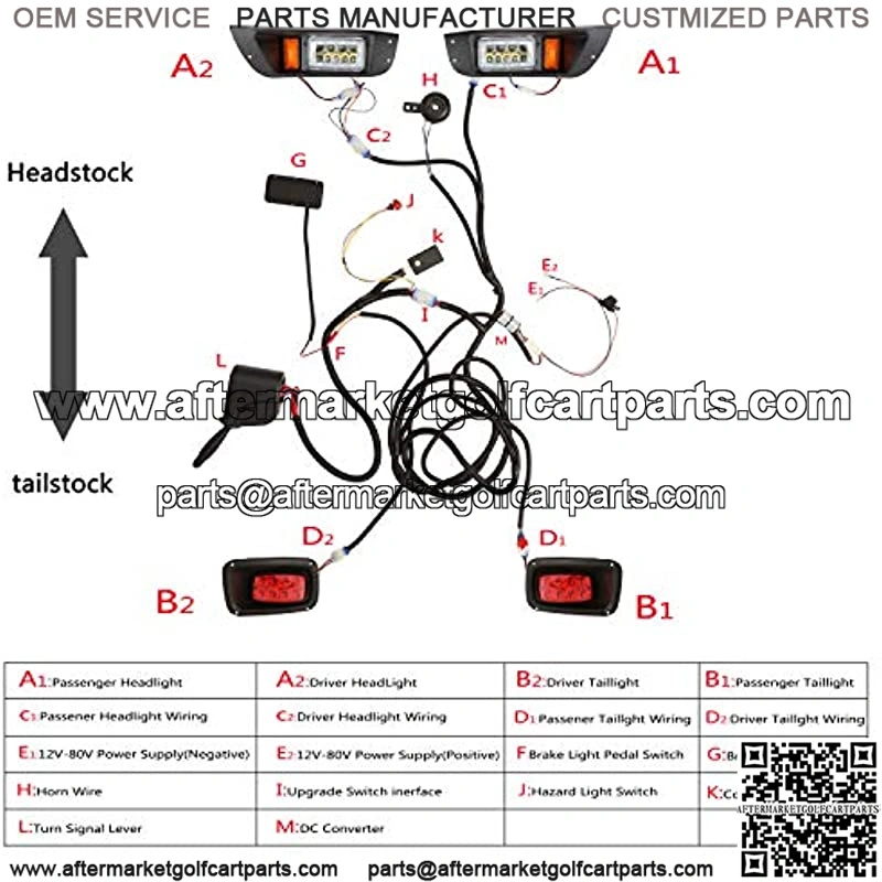 Package Included: 1, 2x LED Head Lights 2, 2x LED Tail Lights 3, 1x Main upgraded wiring harness 4, 1x cutout tempalate 5, 1x user manual NOTE: If the model is 12V golf cart, please pull out the plug next to the voltage converter, then combine the 2 black wires and the 2 red wires together, and then connect the power supply, and it will work normally.