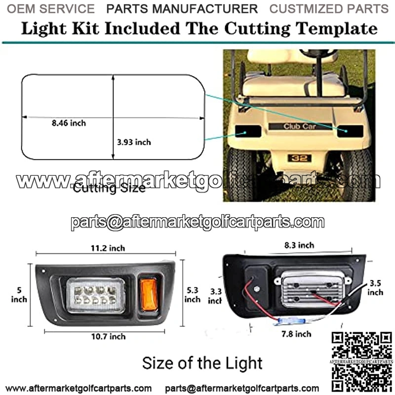 Golf Cart DS LED Headlight with Cutting Templateclub car head lights opening hole is about :8.3inch *3.5inch,
