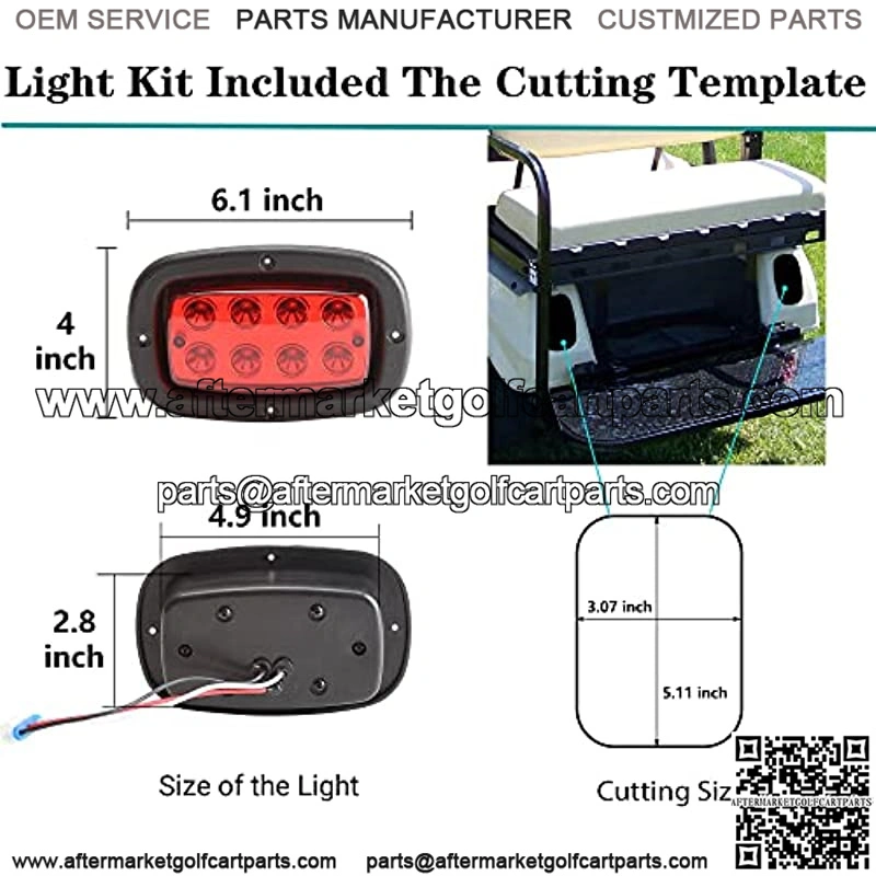 Club Car DS Taillight with Cutting TemplateClub Car taillight opening hole is: 4.9*2.8inch