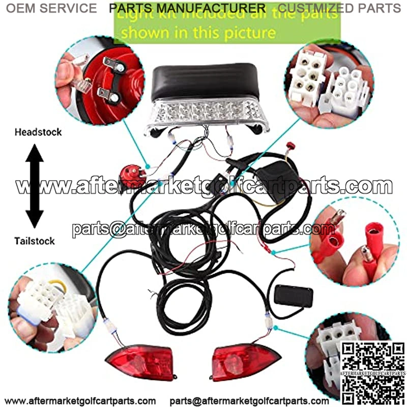 Golf Cart Deluxe LED Head/Tail Light Kits for Club Car Precedent with Universal Deluxe Light Upgrade Kit The light kit included the parts as follow: 1x LED Head Lights2x LED Tail Lights1x Main upgraded wiring harness1x Horn1x Wiring Harness w/ Switch1x Steering wheel column cover1x Brake light pedal1 x Control switch with wiring harnessStainless Steel Mounting Screws You May Like:
