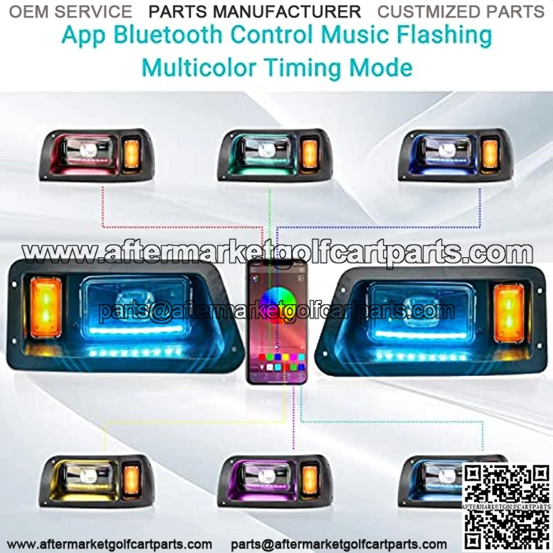 Golf cart LED RGB daytime running light kits come with universal deluxe light upgrade kit ,this deluxe kit included the up-gradable harness, that allows you to extend to brake, hazard,horn and turn signal function.there are front turn signals as well as rear turn signals, hazard flasher, head lights and brake lights.