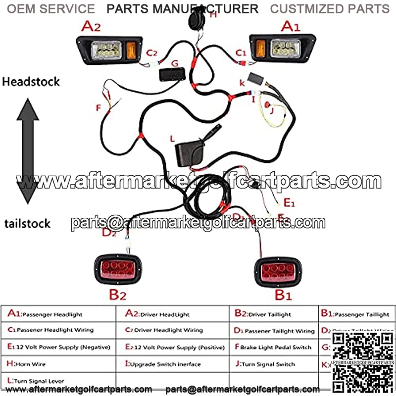 Package included : Yamaha G22 light kits and golf cart universal deluxe light upgrade kit. 2x LED head lights, 2xLED tail lights, turn signals and switch, horn, brake lights, harness hardware and instruction.