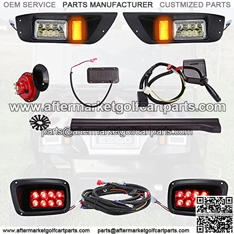 Golf Cart Deluxe LED Head/Tail Light Kits for EZGO TXT (Year 1995-2015) with Universal Deluxe Light Upgrade Kit, with Turn Signals Switch Horn Brake Lights Harness The light kit included the parts as follow: 2x LED Head Lights2x LED Tail Lights1x Main upgraded wiring harness1x Horn1x Wiring Harness w/ Switch1x Steering wheel column cover1x Brake light pedal1 x Control switch with wiring harnessStainless Steel Mounting Screws You May Like: