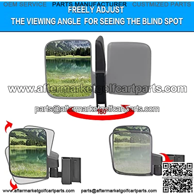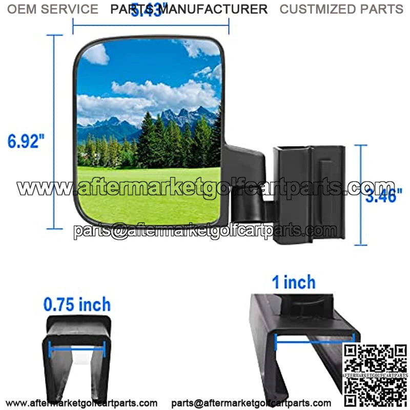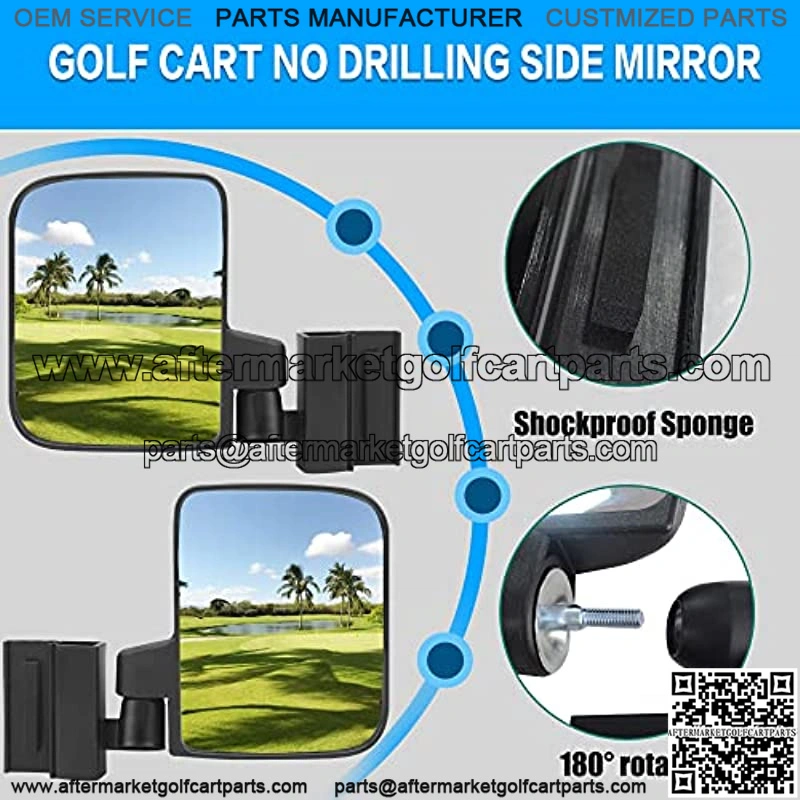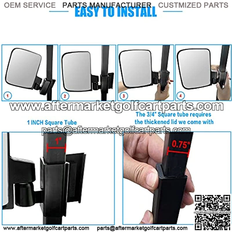 Our drone-free parallel mirrors are suitable for CLUB CAR, YAMAHA, EZGO TXT 2014+ folding windshields and golf CLUB carts with 0.75 and 1 inch square tubes.