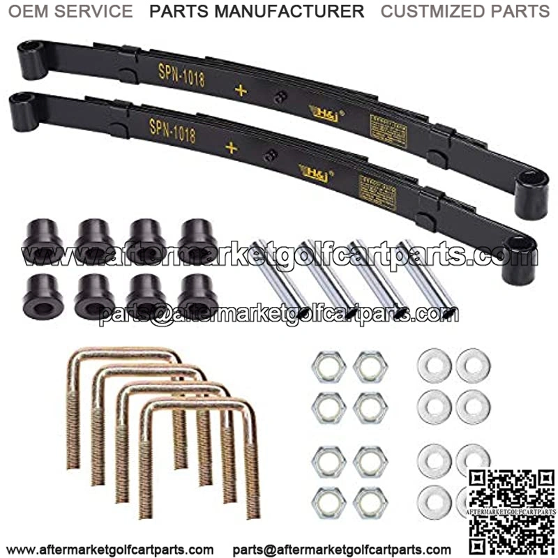 Heavy duty rear leaf spring kit, carbon steel with anti-rust coating, feature a 4 leaf design and are 15% thicker on average than most oem and aftermarket springs Fits EZGO TXT Medalist electric 1994-up and gas 1994-2009 golf cart, EZGO ST350 and ST Sport 2+2 Utility Vehicles, 2-6 Passenger Shuttle Vehicles, Workhorse 800 1000 1200 Trucks, MPT, Clays Car Replaces OEM part#: 70506-G01 74135-G01 74207-G01 74207-G02 74207-G03 This is an OEM replacement of the highest quality, installing rear heavy duty springs allows your golf cart to perform better with the added weight of passengers or cargo Kit includes: 2 * heavy duty 4-leaf rear springs, 8 * rubber bushings, 4 * metal spacer 70289-G02, 4 * U bolts 72618-G01