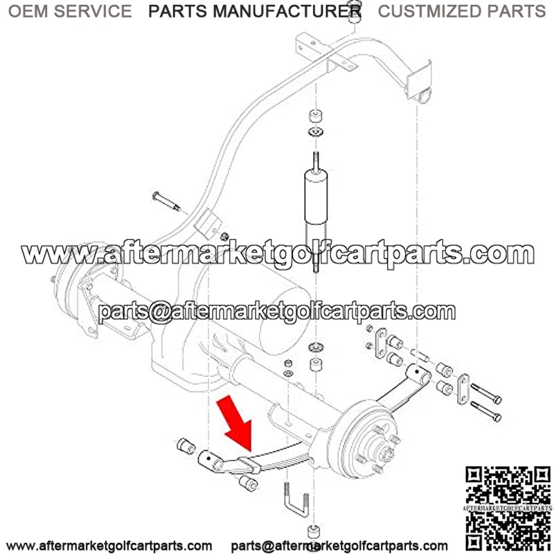 Golf Cart Rear Heavy Duty 4-Leaf Spring Kit for EZGO TXT Electric 1994-up and Gas 1994-2009, Includes Bushings, Sleeves, U Bolts, OEM: 70506-G01 74135-G01 74207-G01 74207-G02 74207-G03