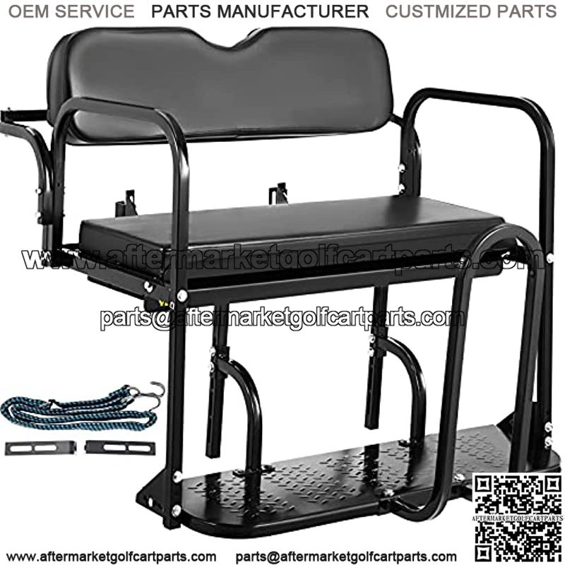 Advanced Details Conforming to ergonomic principles, our golf cart back seat is designed with a contoured cushion, textured footplate, and elastic strap. A grab bar is included free for better hand support when loading/unloading passengers or loading up on groceries.