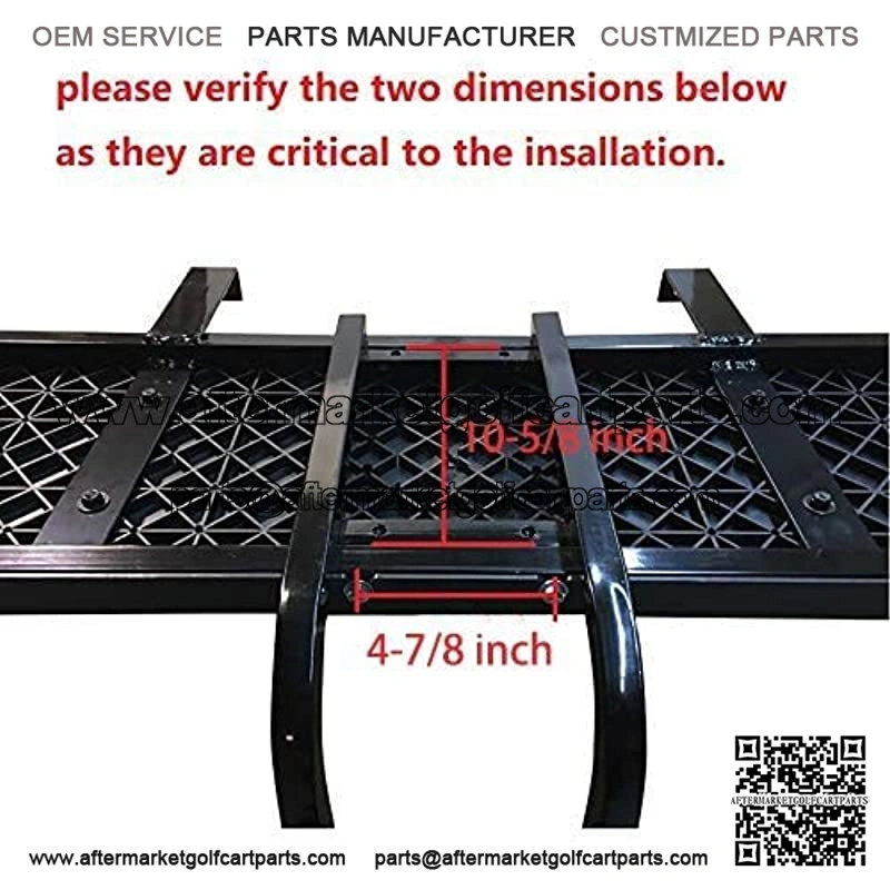 The distance between the brackets front to rear is between 10 5/8 and 11 inches (there are slotted holes). Some easy modifications can be made if your foot board is longer. (drilling, washer, etc.) The distance on the foot plate mounting holes from center to center of the holes is 5 inches.