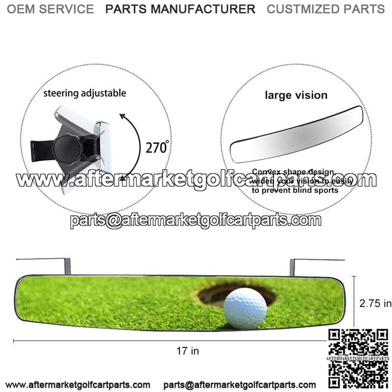 – Golf Cart Mirror Size is 16.5×2.76 inch, Extra wide convex rear view mirror with free adjustment viewing angle, gives the driver a 150 degree panoramic view, improve your driving safety.