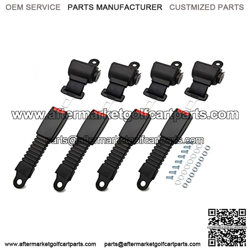 Golf Cart Seat Belts KitUniversal Retractable Front Rear Golf Cart Seat Belt Kit Fitment: Universal retractable front rear golf cart seat belt kit is compatible with most golf cart such as EZGO TXT RXV, Yamaha, Club Car DS Precedent, Go Kart, UTV and more. Features Golf cart seat belt is Retractable. Retractable length 42 inch long which can fit most users well. It’s convenient and fast to adjust the length as you like. Golf cart seat belts can be mounted on the front or rear seat. The design of the seat belt is reasonable and it’s easy to install. This seat belt set has four separate seat belts, which can be installed not only on 2 passengers golf carts, but also on 4 passengers golf carts, which can well protect each passenger. SecurityThis golf cart seat belts kit could provide adult and kids full safety protection on front seat or rear seat,especially when people encounter an emergency brake. Package Included: 4 pcs seat belts with buckles 4 set of installation screws gasket If you have any problems in the process of purchasing or using, please contact us by email, we will solve the problem for you in the first time.
