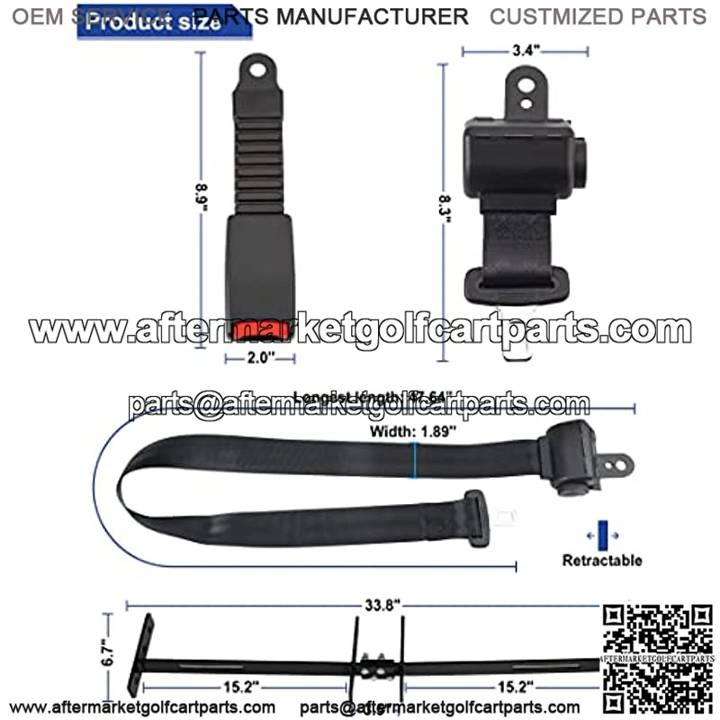 2. Size: Seat bracket size: 33.8″ x 6.7″. Length of belt alone is 42″