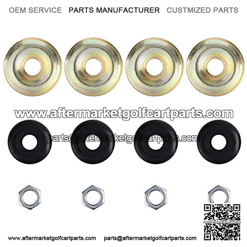 Pacakge content: 4 rubber cushion bushings, 4 retainer washers, 4 hex nuts 3/8-24