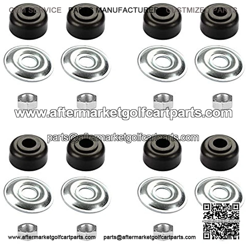 Golf Cart Shock Bushing Kits includes 8 Rubber Bushings, 8 Retainer Washers, 4 Hex Pal Nutheck Nut.