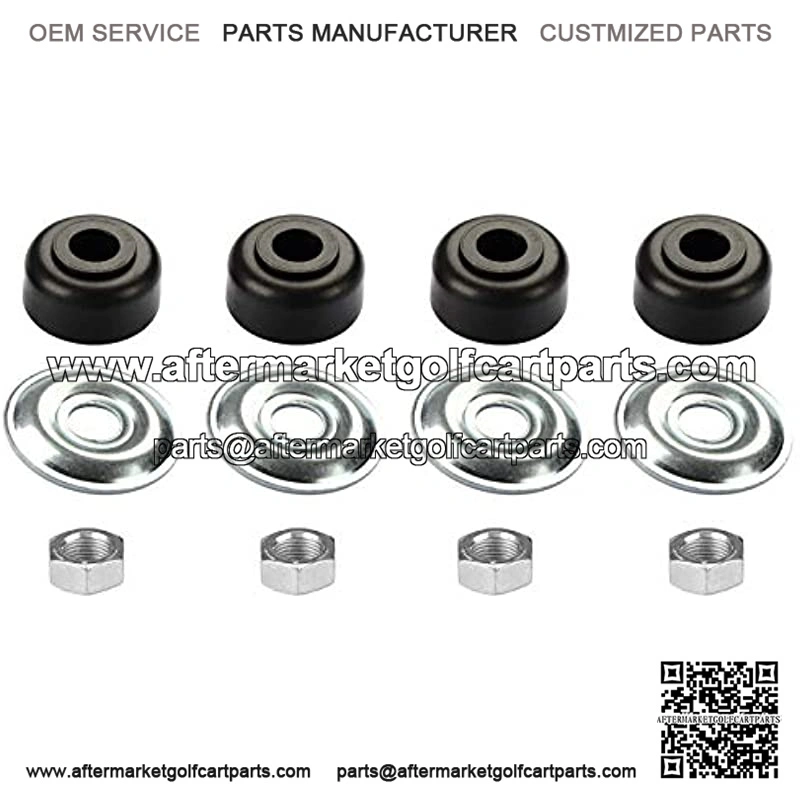 Golf Cart Shock Bushing Kits includes 8 Rubber Bushings, 8 Retainer Washers, 4 Hex Pal Nutheck Nut.