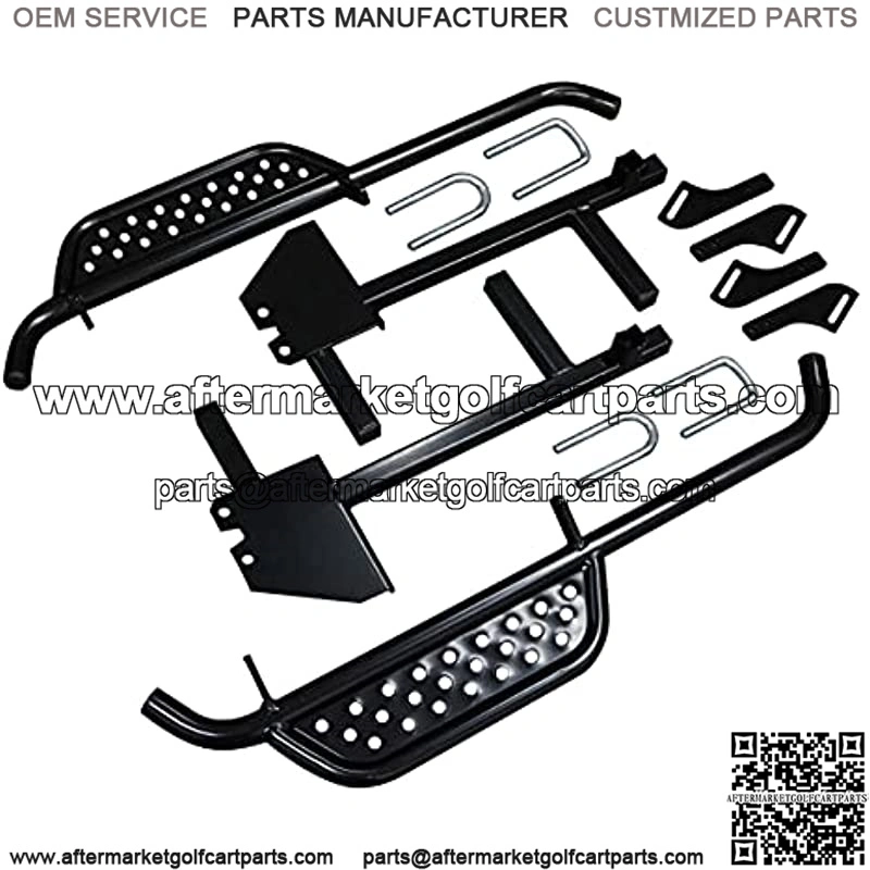 Climbing in and out of your golf cart has never been easier than with the Golf Cart Side Board Nerf Bar kit. This kit includes a set of Driver and Passenger Nerf Bars for the Club Car DS (2004 to present, Gas and Electric) and all necessary mounting hardware and instructions. It is engineered with durable, high quality steel, machine welded for long-lasting strength, and complemented with black weather-resistant powder coating. Easy DIY installation takes up to 1 hour to finish, plug and play using the included hardware and step-by-step instructions. A great upgrade to both the looks and functionality of your cart and a perfect complement for golf carts with lift kits.Note – Comes with the adapter bracket kit designed to fit on all Club Car DS Golf Carts.Compatible with 2004-Up Club Car DS gas & electric golf carts.