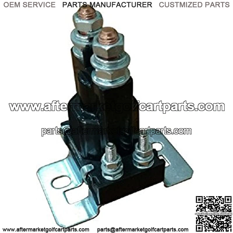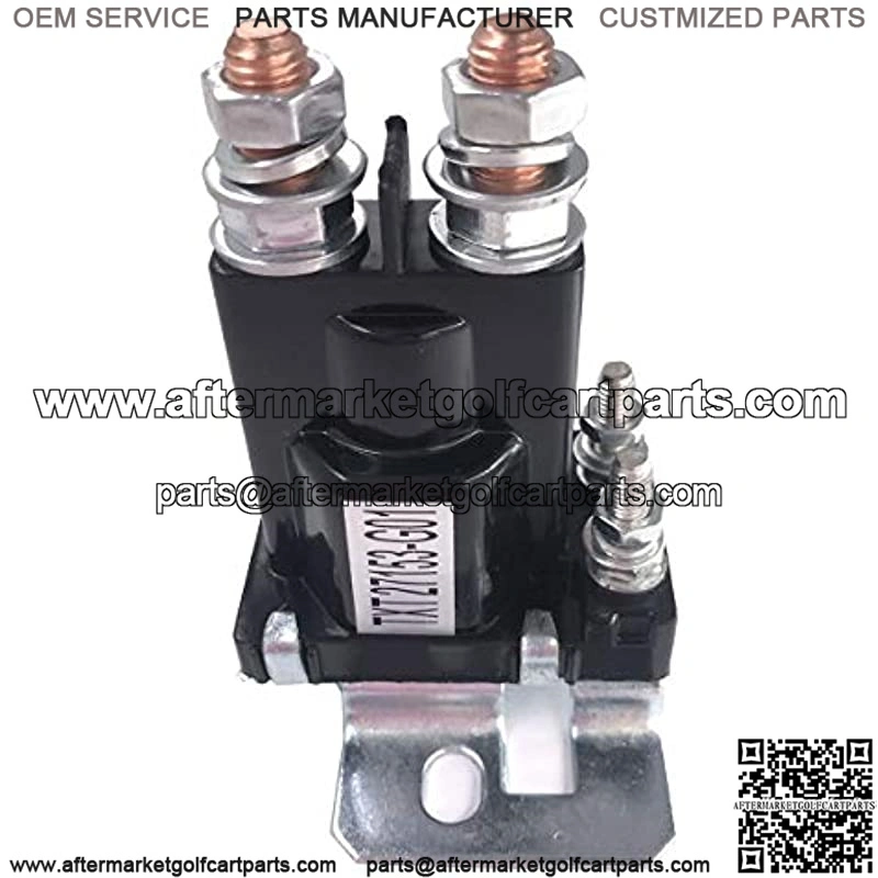 The 14 Volt Solenoid is used on 1994-current E-Z-GO 4-Cycle Gas Vehicles, and is the main electrical switch that allows battery current to flow throughout the vehicle. The vehicle’s solenoid operates the entire time the acceleration pedal is pressed. This item replaces part# 27153G01.
