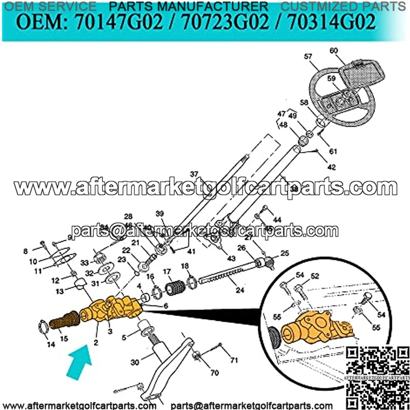 Fits For Ezgo Medalist/Txt Gas & Electric (1994-2000) Steering Box Assembly, OEM: 70147g02, 70723g02, 70314g02