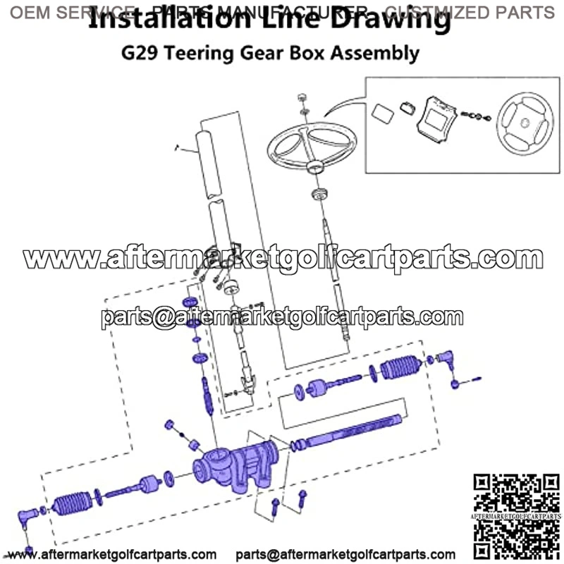 When the steering wheel and tires of the golf cart are kept straight, tighten the steering joint and the installation is complete (Don’t forget to lubricate oil the end of the rod after installation).