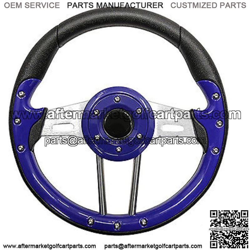 Golf Cart Steering Wheel- Blue Grip with Brushed Aluminum Spokes- 13″ Diameter