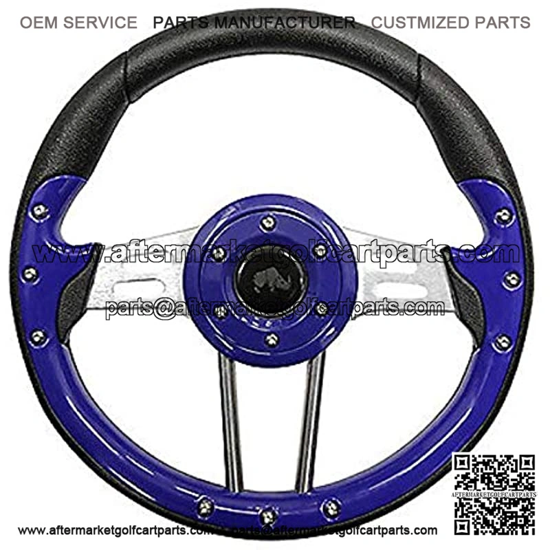 Includes (1) Custom Steering Wheel- 13. Diameter (adapter NOT included) . Style: Aviator 4 . Color: Blue Grip with Brushed Aluminum Spokes . Easy installation on EZGO, Club Car and Yamaha Golf Carts . Custom Steering Wheel Adapter (5 or 6 hole) is required and is sold separately . Horn button is for aesthetic purposes only . Upgrade the look of your golf cart with this stylish blue steering wheel . It is important that you know the year, make and model of your golf cart prior to purchase, so you get the correct adapter** . This steering wheel will require a cart specific adapter (not included)**
