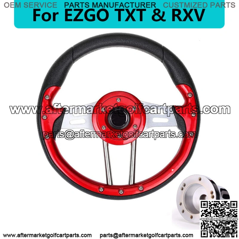 Golf Cart Steering Wheel & Chrome Hub Adapter for EZGO TXT RXV Cart Parts Red