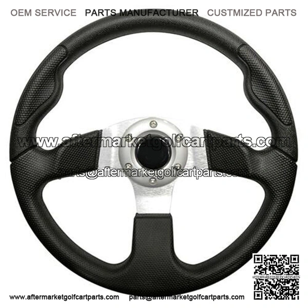 Color: Black Grip with Brushed Aluminum Spokes. Easy installation on E-Z-Go, Club Car and Yamaha with Custom Adapter (sold separately). Horn button is for aesthetic purposes only.