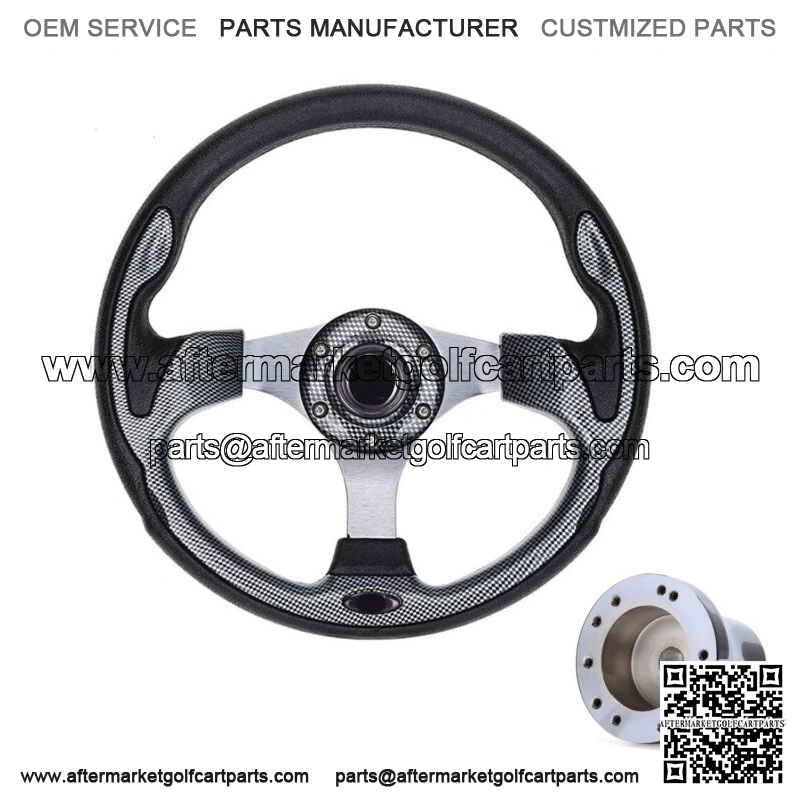 Golf Cart Steering Wheel with Adapter for Club Car Precedent Carbon Fiber Style- 12.5″ Carbon fiber golf cart steering wheel and Chrome 5/6 hole steering wheel hub adapter fits Club Car Precedent gas and electric golf cart only;- The decor of this golf cart steering wheel is inspired by professional racing cars. By replacing this steering wheel with its nice racing style look, your golf cart will look new and stand out on the street.- Golf Cart Steering wheel brings a comfortable feel through the rounded and smooth grip that fits the curve of the human palm, so that your hands do not get tired of driving for a long time.- Golf Cart Steering wheel has hard aluminum spokes and Lightweight body made of PVC, wear-resistant, corrosion-resistant and 1-year warranty, which makes it last longer.- Easy to install: Come with upgraded nuts and wrench for 5 minutes quick installing this golf cart steering wheel and Club Car Precedent chrome adapter. – Package: 1x Golf Cart Steering Wheel + 1 x 5/6 hole Steering Wheel Hub Adapter for Club Car Precedent.- Best Birthday Gift/ Christmas Gift for your farther/ friend.