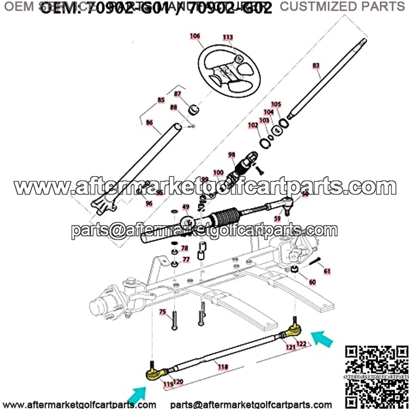 Golf Cart Steering Tie Rod Assembly for EZGO TXT Medalist 1994-2001 70074-G01