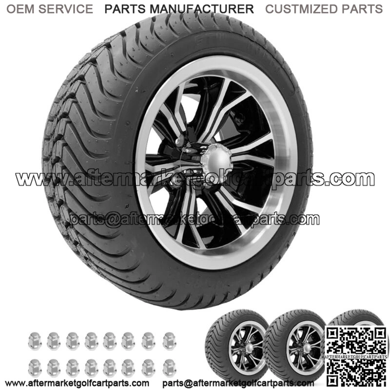 Golf Cart Wheels 12″ Phenom Machine/Black on Street Tires Set of 4