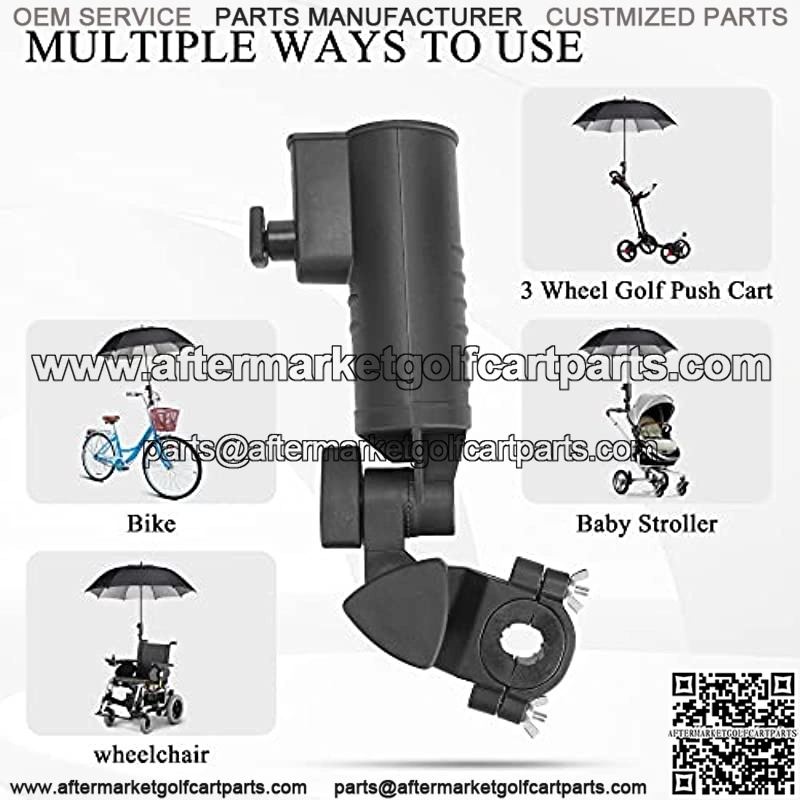 Universal Umbrella Holder not only mounts on 3 wheel golf push carts, but also fits strollers, bicycles, electric vehicles, children’s strollers, wheelchairs, fishing chairs, and other items that fit it.