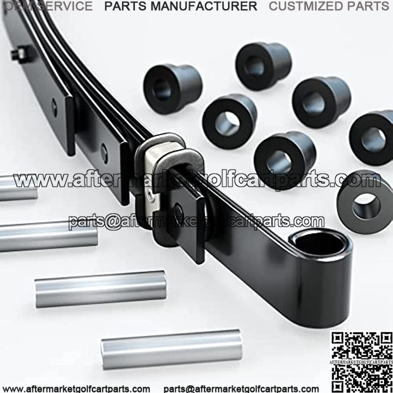 This Heavy Duty Golf Cart Rear 4-leaf Spring Kit Includes (8) Rubber (Not Imitation) Bushings & (4) Stainless Sleeves & (4) U-bolt nuts. Bushings & Sleeves are pre-installed in the springs.