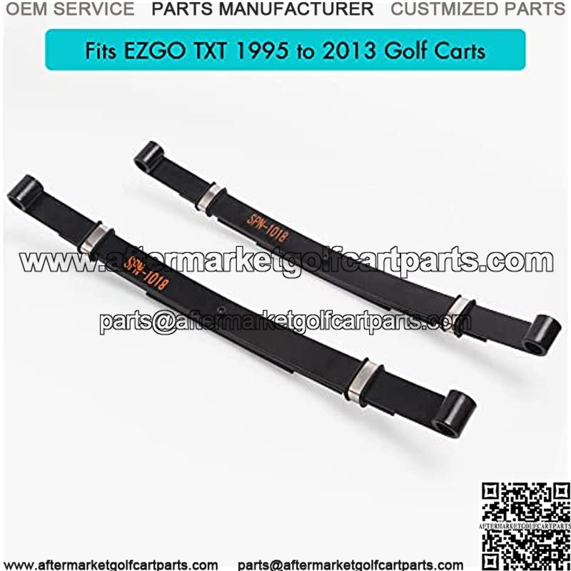 Fits EZGO TXT 1995 to 2013 Golf CartsIncludes (8) Rubber (Not Imitation) Bushings & (4) Stainless Sleeves & (4) U-bolt nuts. Bushings & Sleeves are pre-installed in the springs. High Quality: rear carbon steel leaf spring kit made with heavy duty stiff springs and anti-rust coating, they’re much thicker than most OEM and aftermarket springs;Easy Installation: Our Leaf bushing kit has already been Semi-Installed. People could finish the installation by themselves alone with some basic hand tools, very easily.