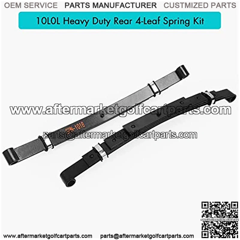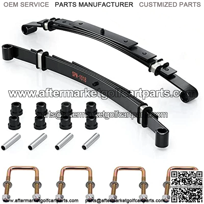 This Heavy Duty Golf Cart Rear 4-leaf Spring Kit Includes (8) Rubber (Not Imitation) Bushings & (4) Stainless Sleeves & (4) U-bolt nuts. Bushings & Sleeves are pre-installed in the springs.