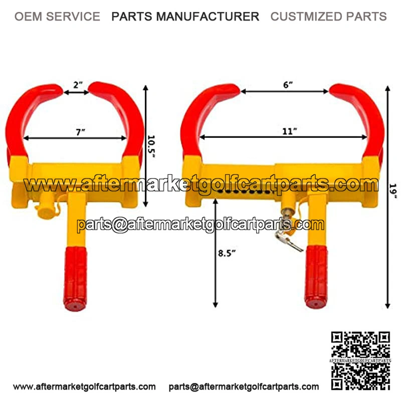 This wheel lock clamp is a perfect anti-theft device that will completely immobilize a wheel from rotating or turning. Adjustable ratchet design makes it fit 7 to 11 inch width tires, which includes most vehicles: cars, trucks, motorcycles, ATV’s, RV’s, golf carts, small aircraft, boat trailer, scooters, go karts, lawn mowers and more.