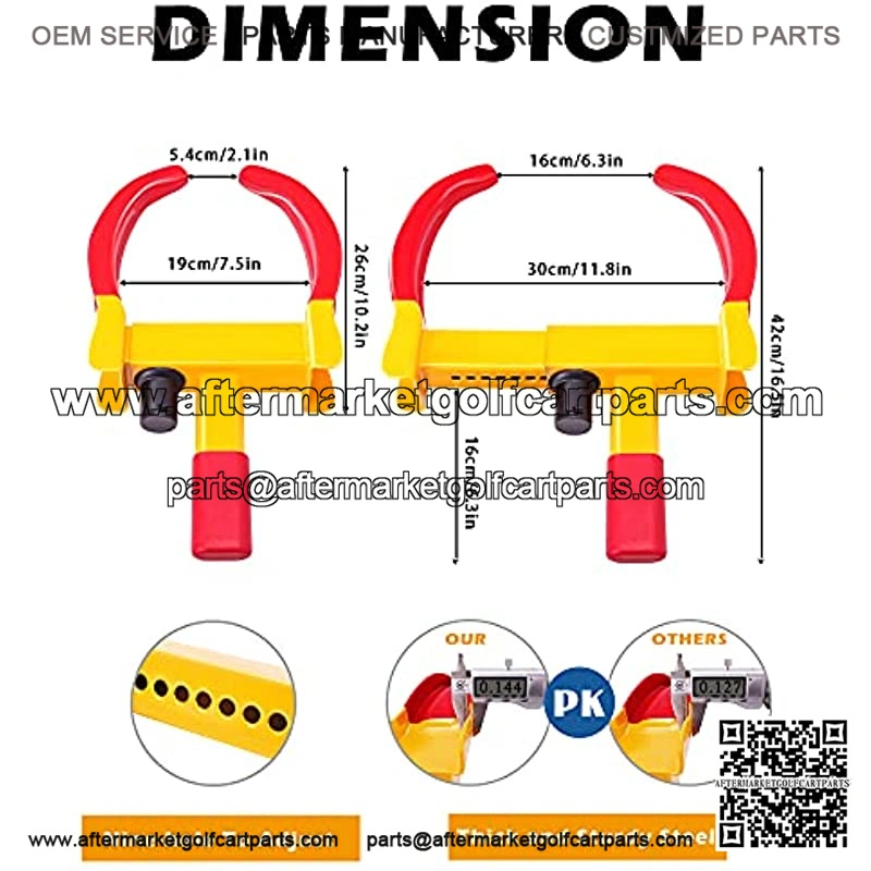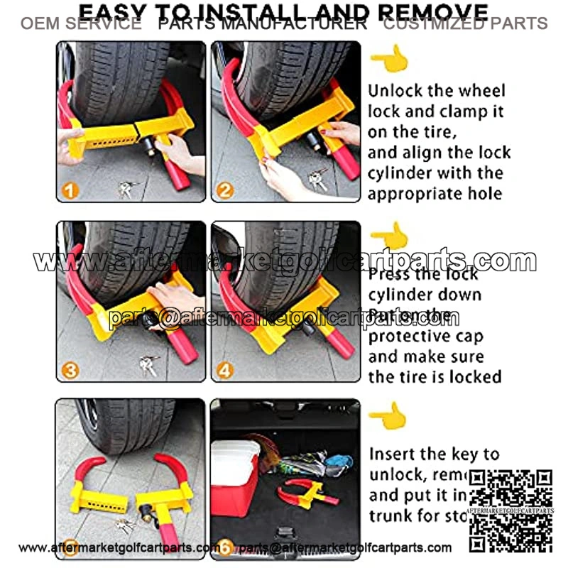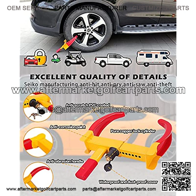 HIGHLY VISIBLE AND SECURITYBright yellow and red color of wheel clamp lock is ideal for maximum visibility in both day and night.The wheel locks greatly reduces the possibility of being targeted by thieves and protects your vehicle effectively.
