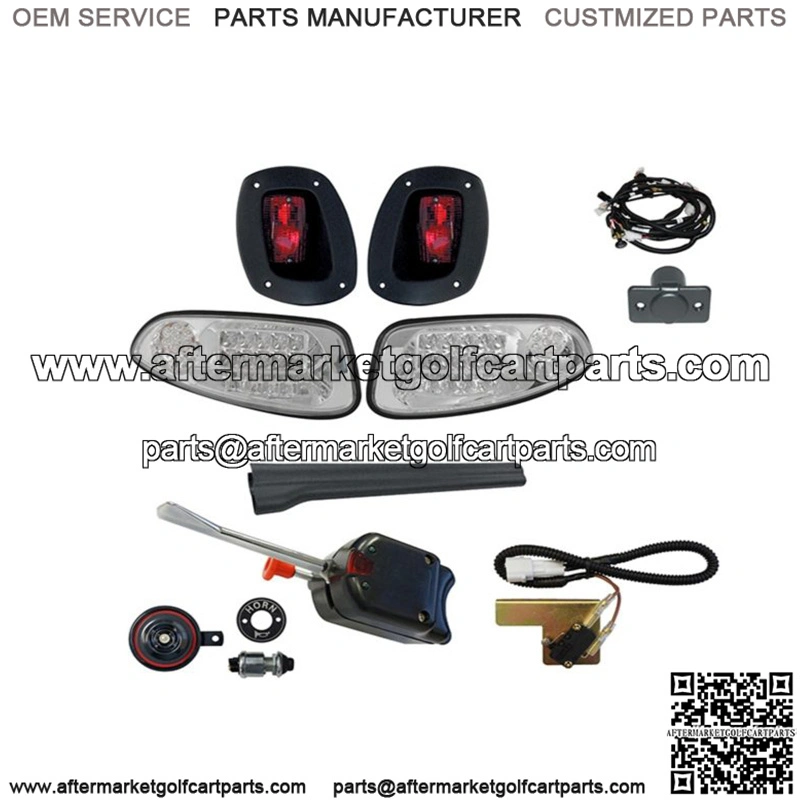 LED (with Clear, Euro Style Headlight Lenses) Basic Factory Style Street Package for 2008 through 2015 electric E-Z-GO RXV. High quality, easy to install wiring harness. Super Bright LED headlights. 12V operation for gas or electric carts.