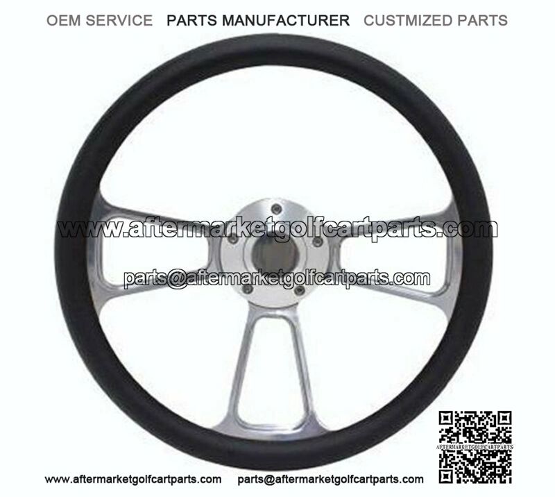 14″ Billet Aluminum with Matte Black Half Wrap Steering Wheel for Golf Carts Includes Horn and Adapter Part: 1098-BLK-HP5-ET5P Behind The Wheel Features Smooth Finger Grooves For Added Grip Sleek Design! – Dimensions (approx): 3.5″ OD x 2.25″ Tall – Dish Depth of approx. 2″ – Polished Horn Button w/ Installation Wires – Full Billet One Piece Installation Adapter This Kit will fit: EZGO Golf Carts (ALL) Club Car (1983 and prior) Bombardier Golf Carts GEM Golf Carts Harley Davidson (thru 1982) Columbia Par Cars (1982 and prior) Artic Cat Prowler Polaris Ranger (1998 and onwards) Polaris RZR (2008 and onwards) E-merge and Anvil (2005 and onwards)