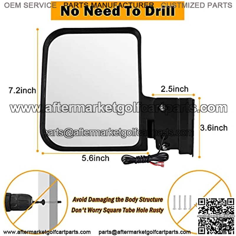 Only Fit 0.75 & 1 Inch Square Strut, No-Drilling Required Golf Cart Side Mirror Kit with LED Turn Signal Light for EZGO Yamaha Club Car Carts Adjustable Golf Cart Folding Rear View Mirrors Set