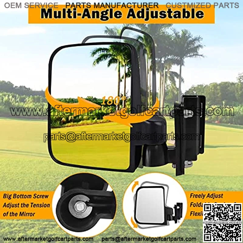 180Flexible AdjustmentGolf cart folding side mirror with embedded adjustable joint, easy to adjust up & down or sideways for the best angle of the viewing that you want. You can fold them in if you’re going through a tight place to prevent breaking.