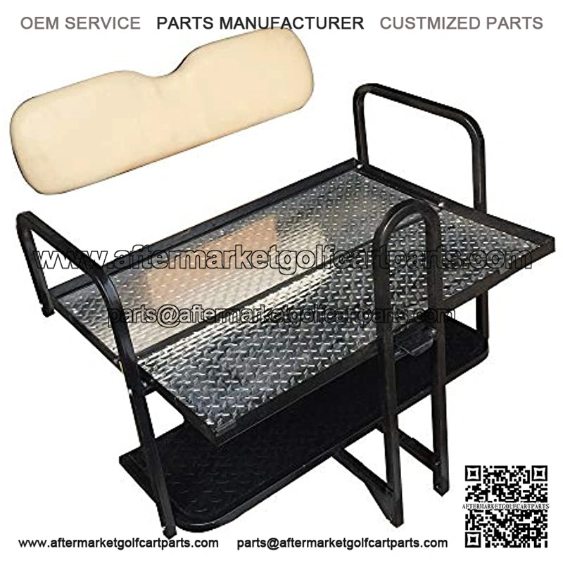 FREE SAFETY GRAB BAR! Bolt On Design 3.5″ Thick Seat Bottom Cushion is much thicker than our nearest competitors equal seat, Heavy Duty Gloss Black Finish to Resist Fading, Highly Polished Diamond Plate Cargo Deck Area, Includes everything needed for installation. Your existing factory roof supports would be re-used with this seat kit and your plastic sweater basket will remain in place, 360 Degree Rail 1″ Tall ALL the way around to hold cargo in place and for added strength of the flip deck. This rear seat fits Club Car Precedent we include everything needed for an easy stress free installation. This kit is a simple bolt on design with FULL COLOR instructions. Our seat kit easily allows you to flip the rear seat cushion out using our integrated grab strap and turn this Into a cargo bed. Our cushions are thicker and softer than the nearest competitor. When we look for a manufacturer we look strictly at quality, durability, and ease of installation. We then field test and have our certified technicians approve all items to ensure our customers always get the best product possible. Only once it has passed our testing do we begin offering that item. That is our quality assurance guarantee only from Performance Plus Carts. We put the time in up front to ensure the happiest customers in the end.