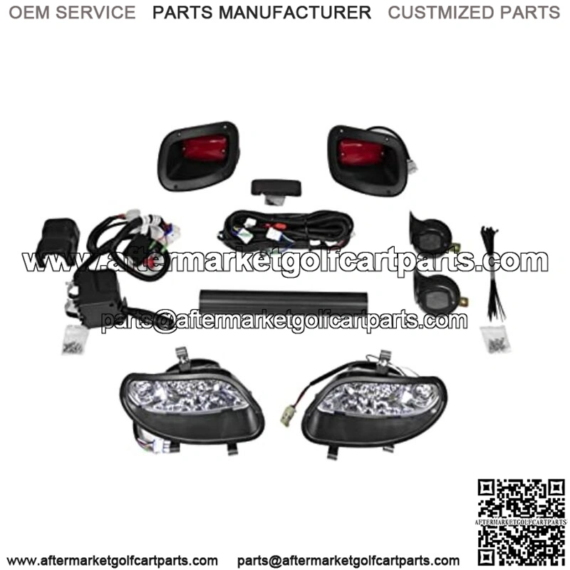 Features: Fits EZGO TXT, T48, Valor, and Freedom (2014-Up) Gas & Electric Models Includes Street Legal Deluxe Upgrade Kit with Turn Signals, Hazard Lights, Brake Pad, and Horn Clip-Style Headlights for Easy Installation No-Flicker, Wide-Range LED lamps provide Green Energy with 10,000+ Operating Hours Expected Full Plug-N-Play Easy to Install Wiring Harness Injection Molded Black Plastic Housing High Quality Mounting Hardware for Long Lasting Durability In Line Fuse for Added Protection Headlight Lumen Rating: 1200 Total Operating Watts: 2.8 Expected Operating Hours: 10,000+ Kit Includes: LED Headlights with 3-Pin Connectors and High/Low Beam Functionality LED Tail Lights with 3-Pin Connectors Steering Column Cover (Measures 13.5 x 1.5 ) Turn Signal Switch Assembly (with Hazard Flashers and Power Functionality) Push/Pull Switch for Hazard Lights Horns for 12-Volt and 48-Volt Applications Brake Pad with Functional Brake Lights Full Plug-N-Play Easy to Install Wiring Harness Installation Hardware Full Installation Instructions (Cutting Templates Included) Tech Tips: Light Kit Operates at 12 Volts Only, ONLY Connect to a 12 Volt Power Source Voltage Converter/Reducer Highly Recommended on 36- and 48- Volt Applications Please refer to your local municipality regulations for additional street-legal requirements