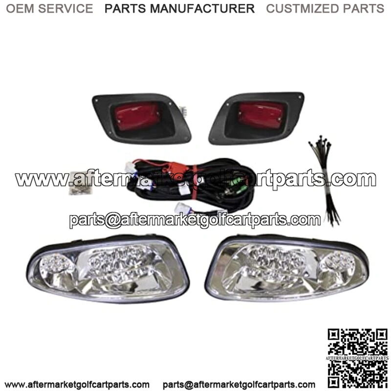Features: Fits EZGO RXV (2016-2021) Gas & Electric Models Clip-Style Headlights for Easy Installation No-Flicker, Wide-Range LED lamps provide Green Energy with 10,000+ Operating Hours Expected Full Plug-N-Play Easy to Install Wiring Harness Injection Molded Black Plastic Housing High Quality Mounting Hardware for Long Lasting Durability In Line Fuse for Added Protection Headlight Lumen Rating: 1200 Total Operating Watts: 2.8 Expected Operating Hours: 10,000+ Kit Includes: LED Headlights with 3-Pin Connectors LED Tail Lights with 3-Pin Connectors Push/Pull On & Off Switch Full Plug-N-Play Easy to Install Wiring Harness Installation Hardware Full Installation Instructions (Cutting Templates Included) Tech Tips: Light Kit Operates at 12 Volts Only, ONLY Connect to a 12 Volt Power Source Voltage Converter/Reducer Highly Recommended on 36- and 48- Volt Applications Easily Make Your Cart Street Legal with a Deluxe Upgrade Kit (Includes Turn Signals, Brake Lights and Horn) – Please refer to your local municipality regulations for additional street-legal requirements