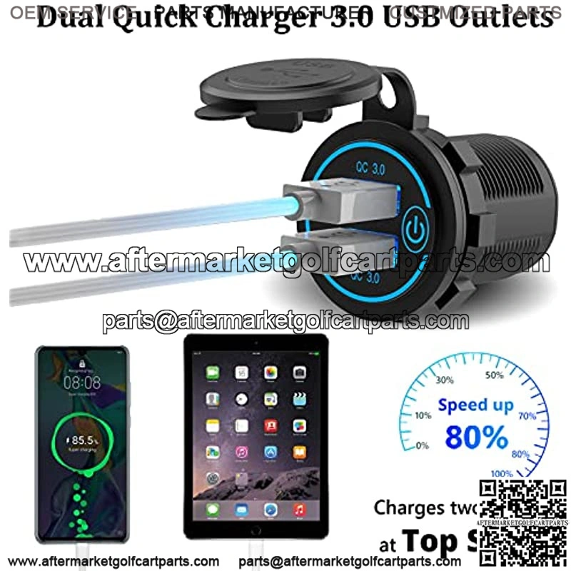 Quick Charge 3.0 USB OutletsQidoe Dual QC 3.0 Car Sockets total power up to 36W. It can charge two devices simultaneously at QC3.0 speed from 0 to 80% in 35 minutes. Provides 4x faster charging speed to compatible devices, and deliver the Fastest Possible Charge to All non-quick Charge Device. Built-in Smart IC, Outputs Stable Current Without Fluctuation.