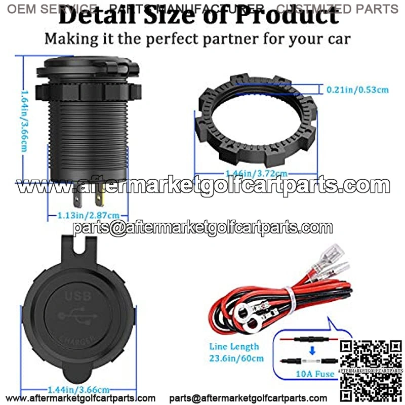 1 x Brand new QC 3.0 USB charger socket; 1 x 23.6 Inches Wire; 1 x 10A fuse.