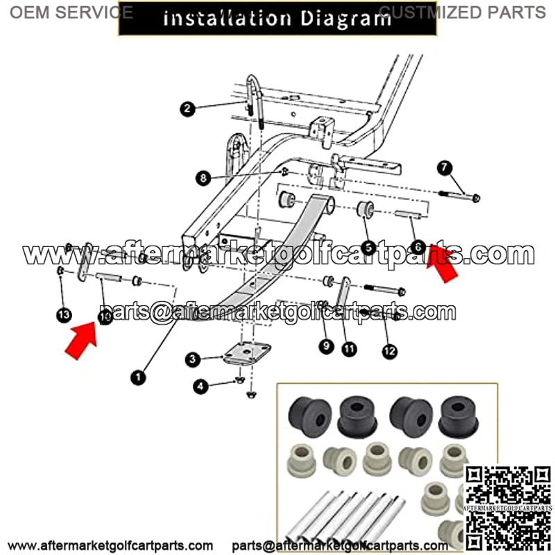 Rear Leaf Spring and Sleeves Bushing Kit for EZGO RXV 2008 up Golf Cart