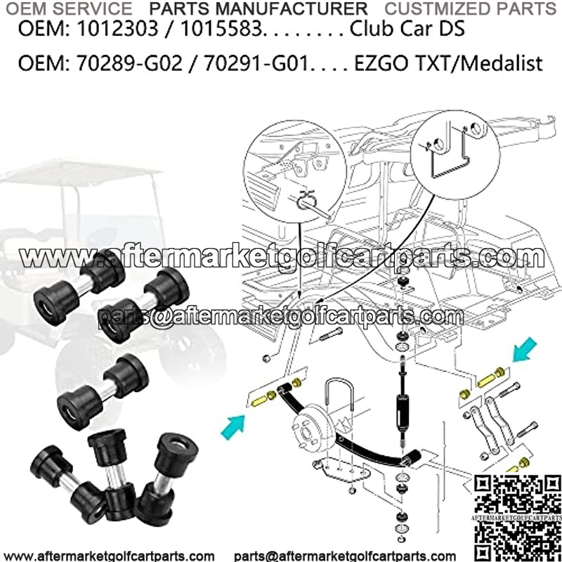 Rear Leaf Spring Bushing & Sleeves Kits for Club Car DS Golf Cart 1981-up & EZGO TXT/Medalist 1994-up, Replaces OEM 70289-G02 70291-G01 1012303 1015583