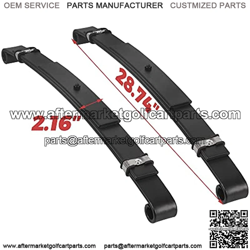 Fits 1996-2013 EZGO TXT GAS OR ELECTRIC Golf Cart. Direct replacements for original Rear Leaf Springs. Reinforced from the original GM design.