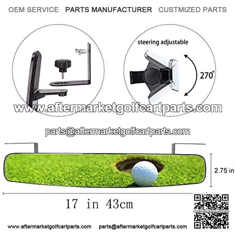16.5″ Extra Wide Golf Cart Rear view MirrorSize:2.75″ x 16.5″ mirror face, Curved to see everything behind you; 150 degrees behind you.Easy to look into and see 150 degrees behind you! You can see just about everything behind your left and right hand shouldersEasy to installed, with two provided self tapping screws. PLEASE MAKE SURE THAT YOU HAVE A SUITABLE SURFACE TO MOUNT TOO (i.e. metal crossbar).From the manufacturer: The installation kit of this product originally includes 2 black rubber washers. After retesting it later, it is proved that the black rubber washer will make the fixing of the mirror worse. Therefore, the existing product mounting kit is not equipped with black rubber washers.