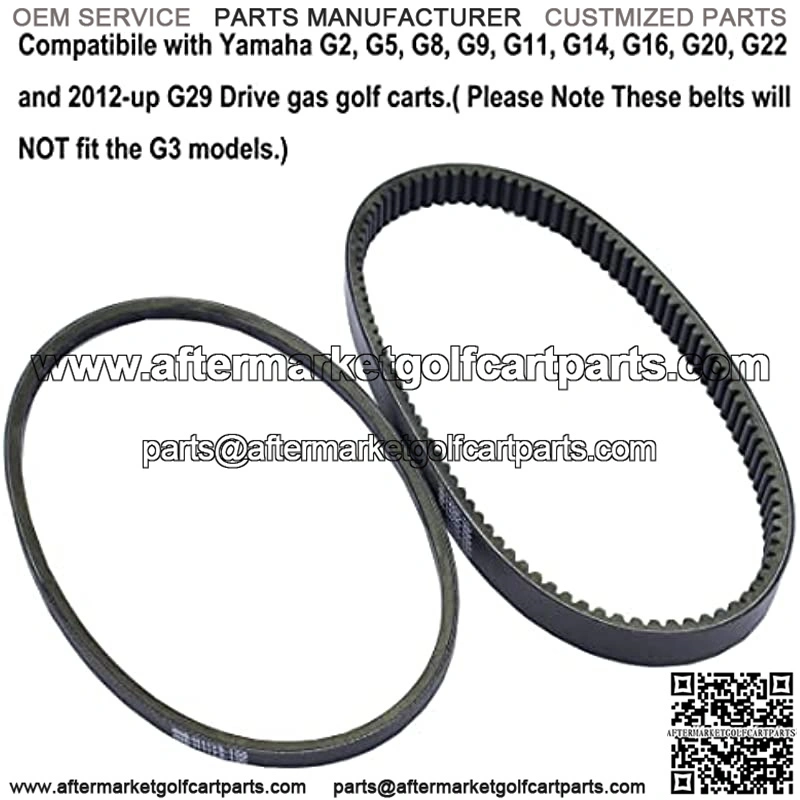 Compatibile with Yamaha G2, G5, G8, G9, G11, G14, G16, G20, G22 and 2012-up G29 Drive gas golf carts.( Please Note These belts will NOT fit the G3 models,not suitable for G29/Drive 2007-2011. )
